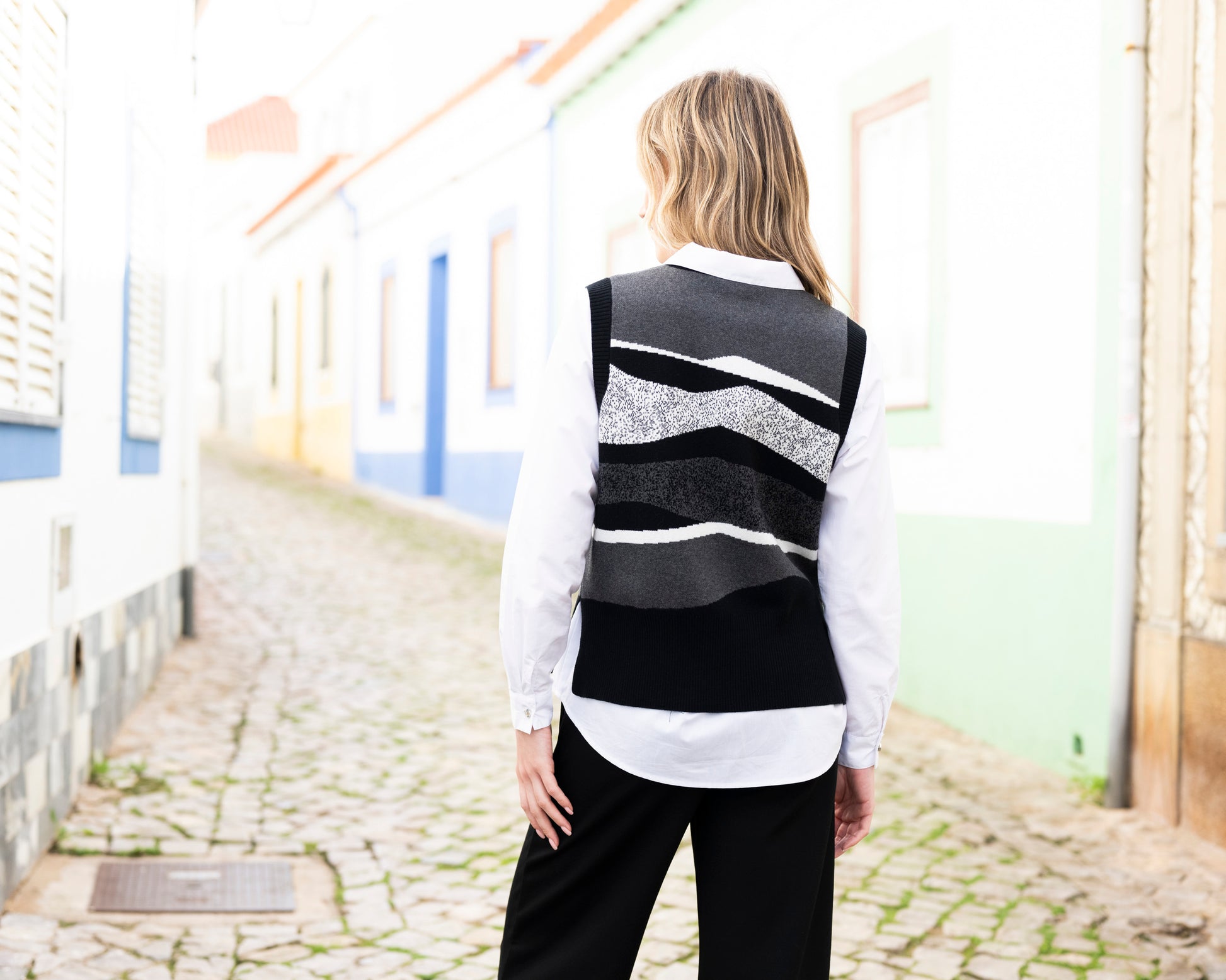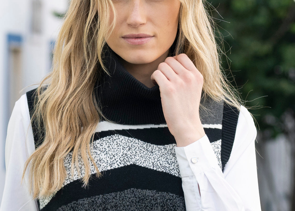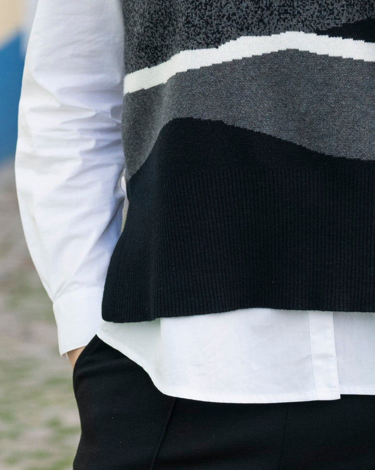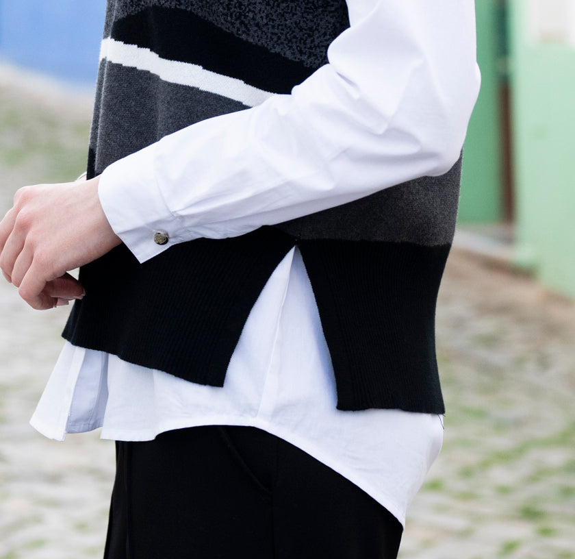 Marble Relaxed Fit Vest w/Detachable Collar Black 8107-101