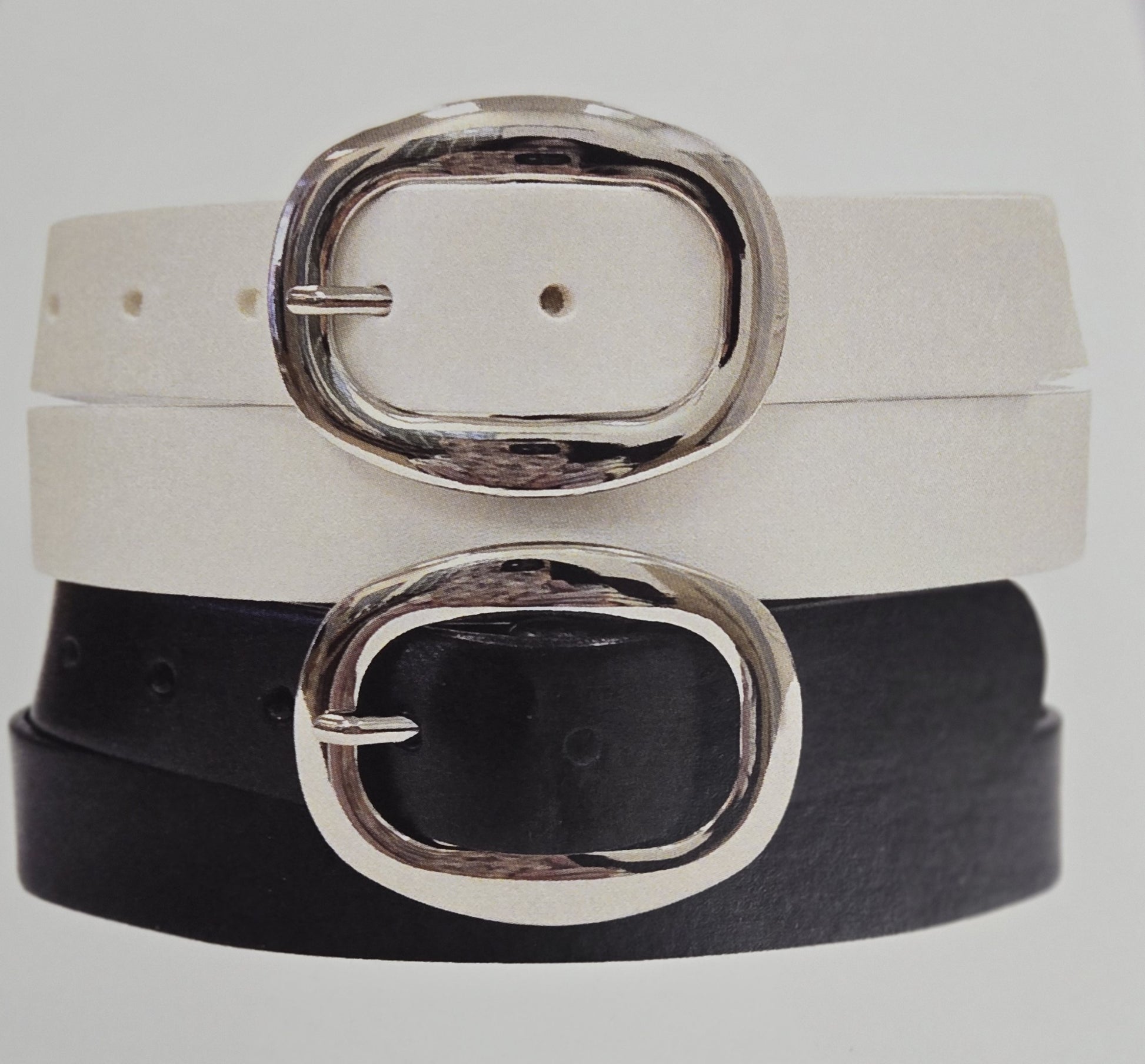 Description: Italian leather belt with a nickel centre bar buckle. 30 mm.
