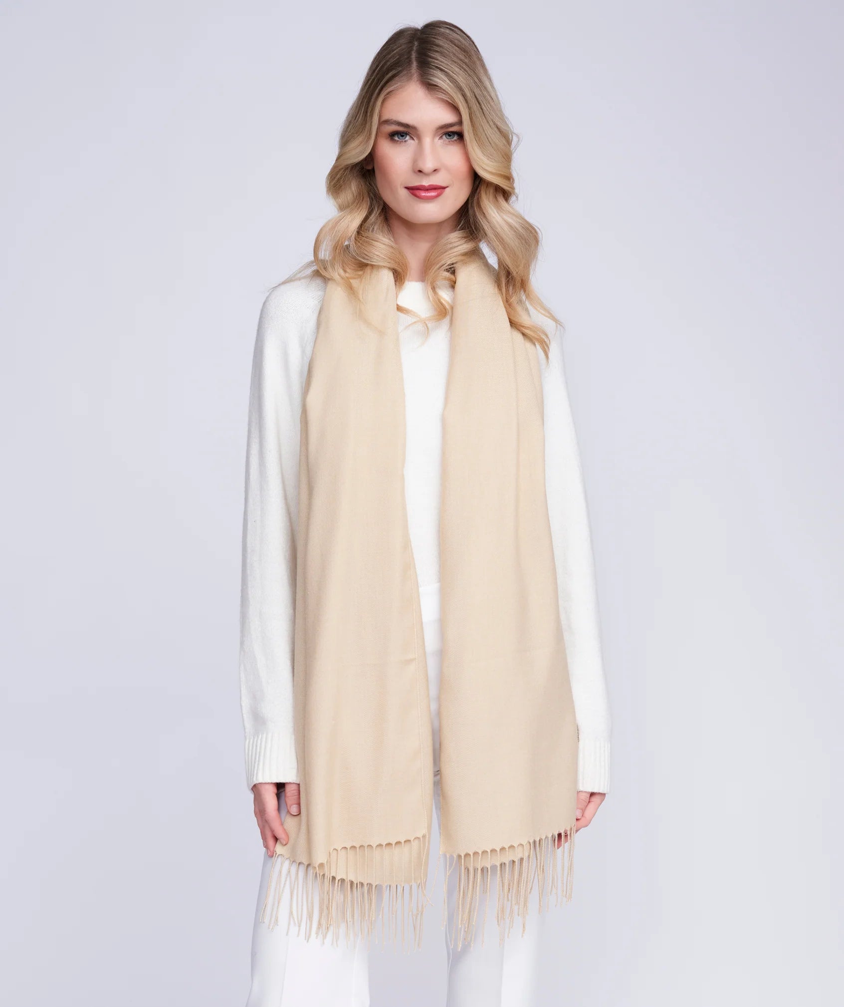 Description: Pia Rossini fringed scarves are luxuriously soft and made in Italy! The quality is lovely, and this item can we worn as a scarf or as a shawl.