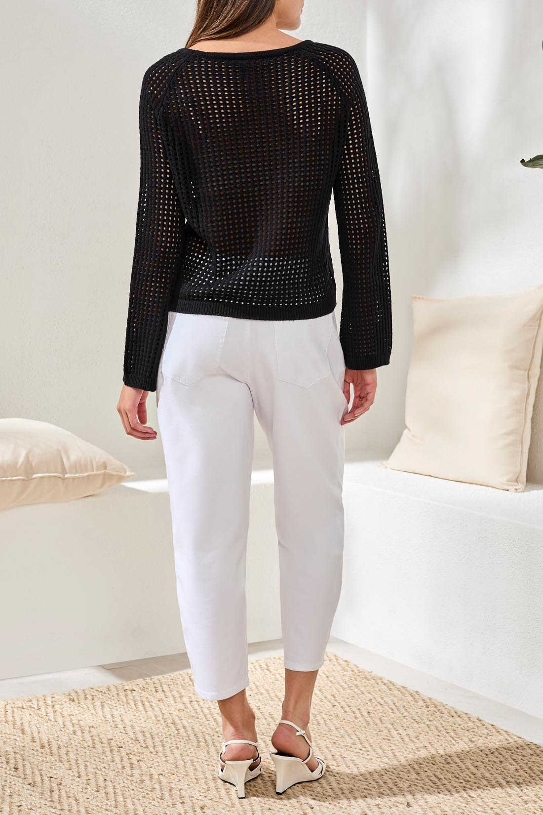 Tribal Bell Sleeve Boat Neck Open Stitch Sweater Black 62190-5487-0002