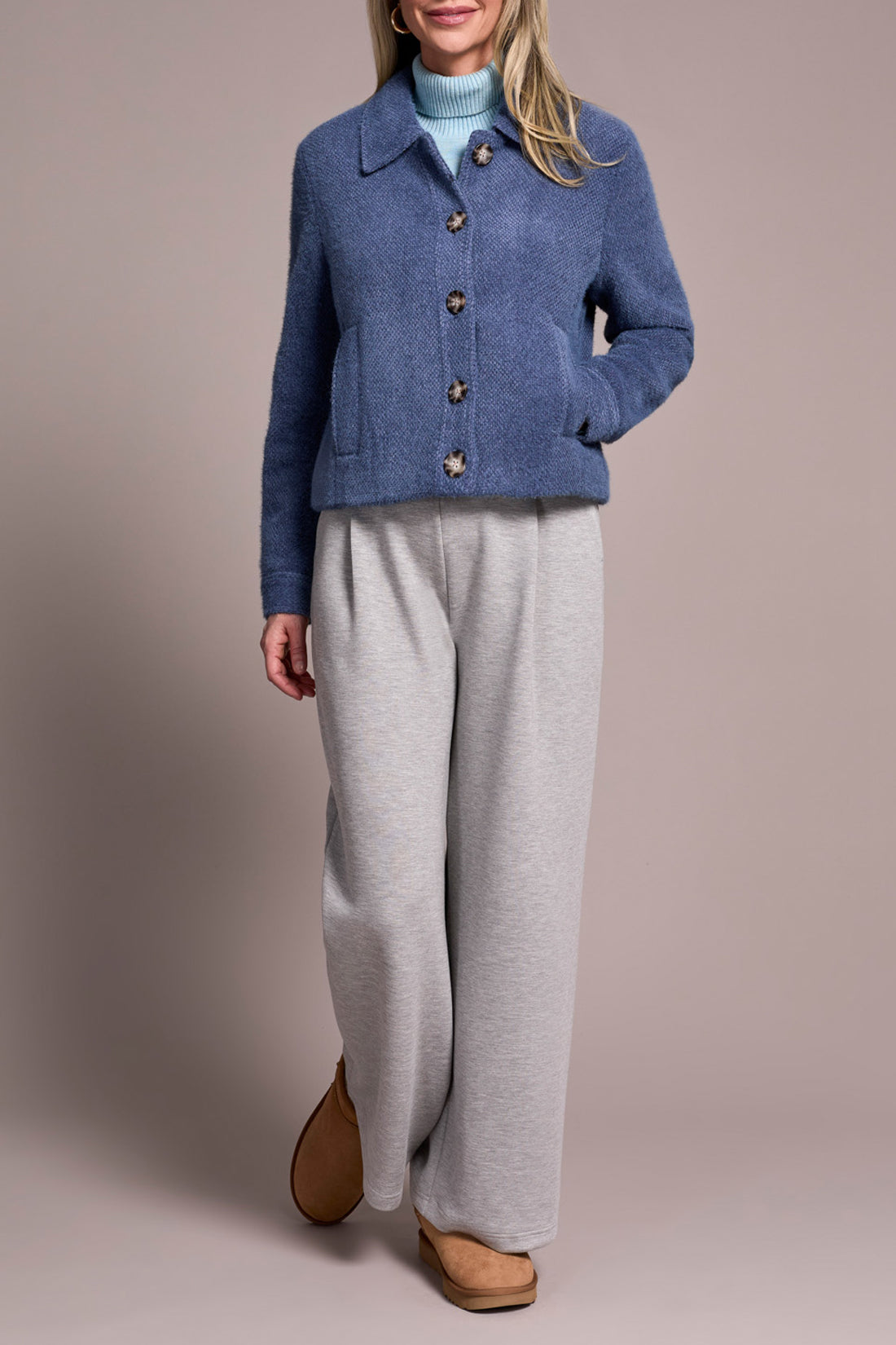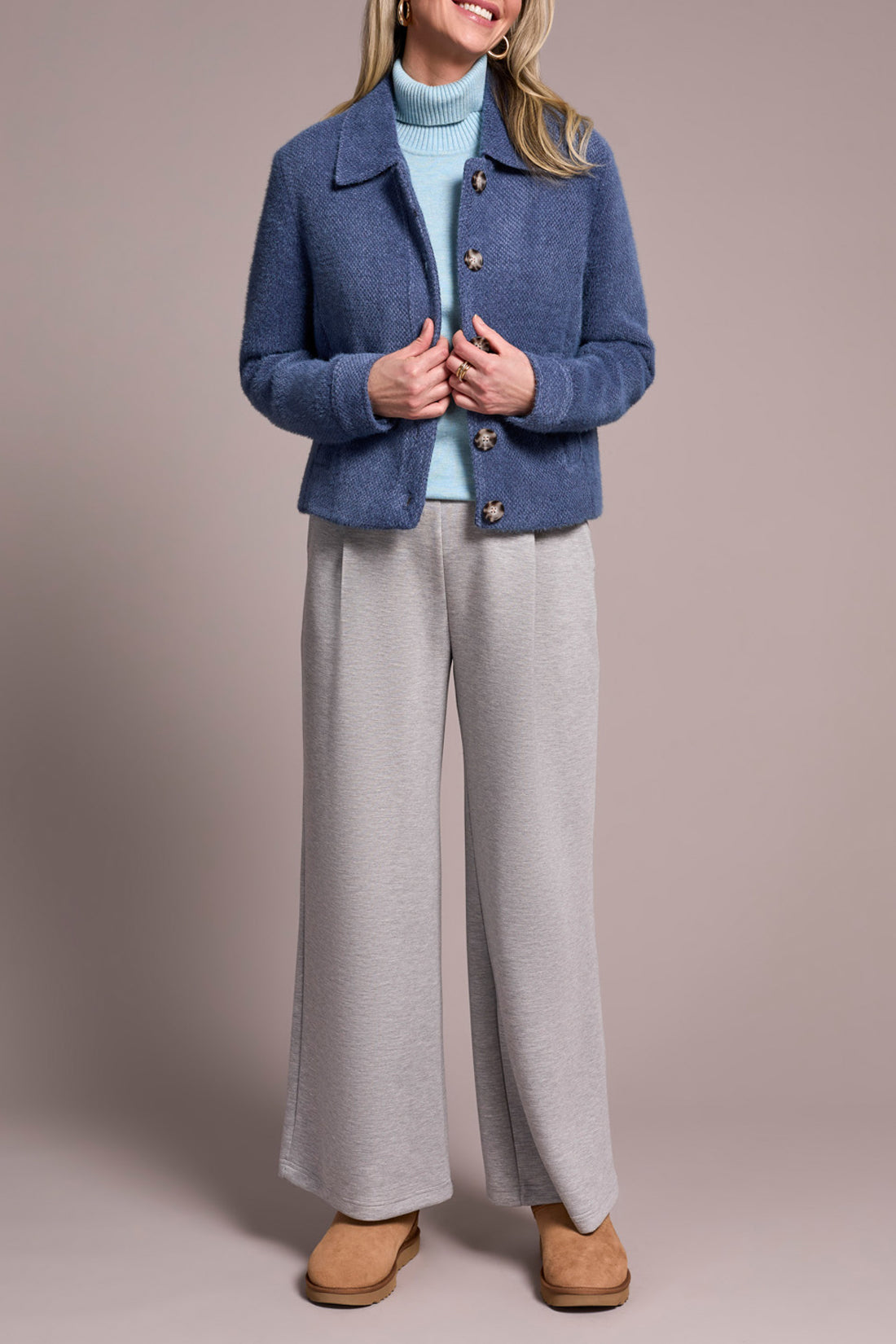 Description: Tribal's long sleeve button front jacket is a pleasure to wear! Made of a stretch chenille fabric, it is soft to the touch and luxurious in texture! Features include a collar, placket with contrast button front, long sleeves with placket and cuffs, two front pockets, back yoke and back centre seam.
