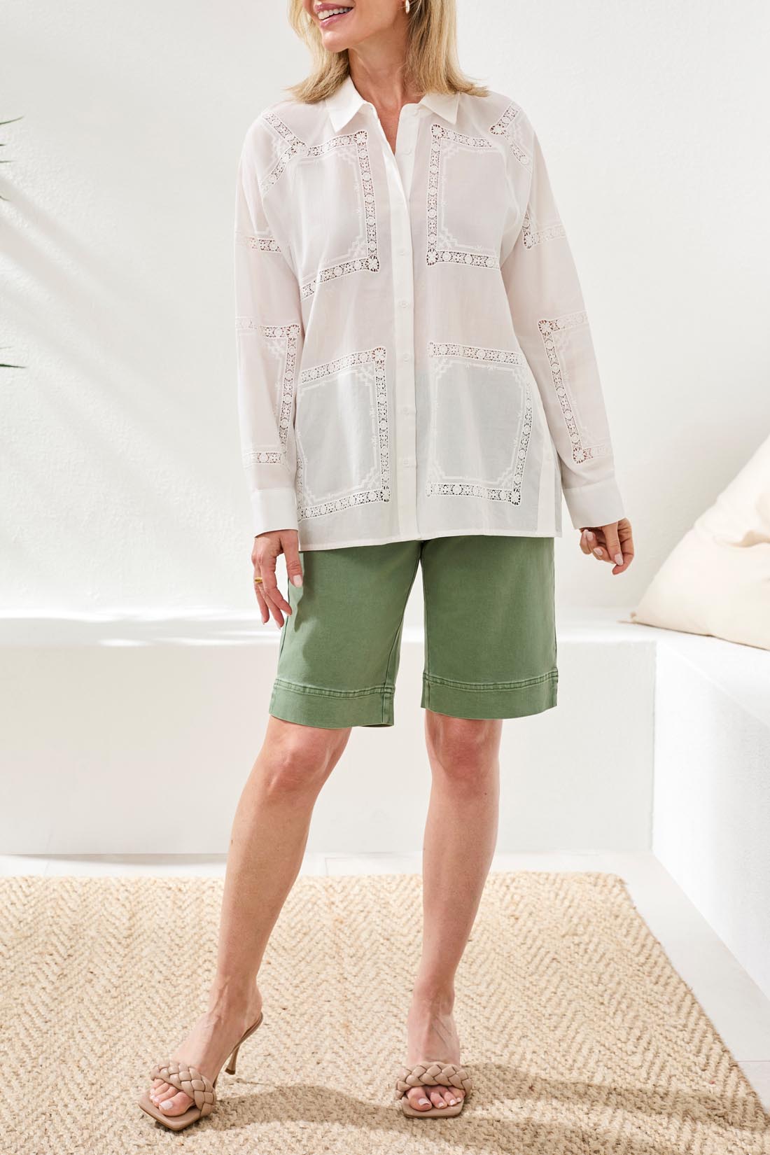 Tribal Long Sleeve Button Front Blouse w/Side Placket White 30210-8379-0001